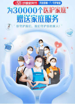 在这次公益行动中,医护人员可以申请免费安全家庭服务。而这些免费的家庭服务,也将优先向定点收治新冠患者医院,以及驰援武汉的医护人员发放。