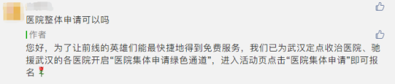 在活动开始后不久,便有人在好慷在家的公众号中留言说,医护人员太忙了,建议开启集体申请。