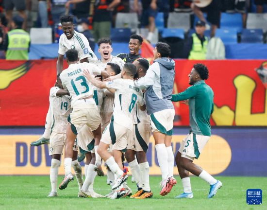 9月10日,沙特队球员在比赛中庆祝绝杀进球。新华社记者 曹灿 摄