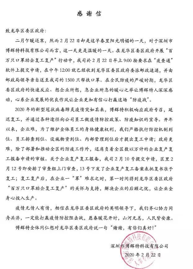 通过“疫查通”系统申请的第一单口罩物资于2月22日12点27分顺利完成派送(企业9点申请),接收方为深圳市博辉特科技有限公司。
