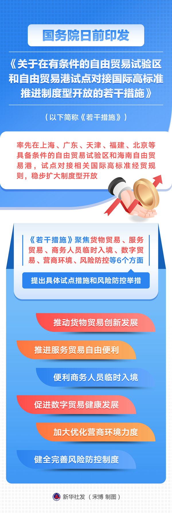 国务院印发《关于在有条件的自由贸易试验区和自由贸易港试点对接国际高标准推进制度型开放的若干措施》