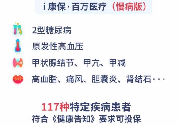 今年5月15日,平安健康APP推出了平安i康保·百万医疗(慢病版),大幅放宽投保条件,符合条件的特定117种疾病患者均可投保,年龄覆盖18-55周岁,为慢病人群打开一扇窗。
