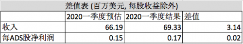 2020年第一季度业绩
