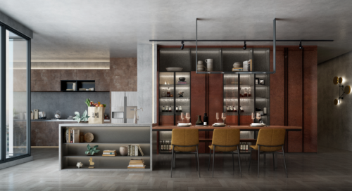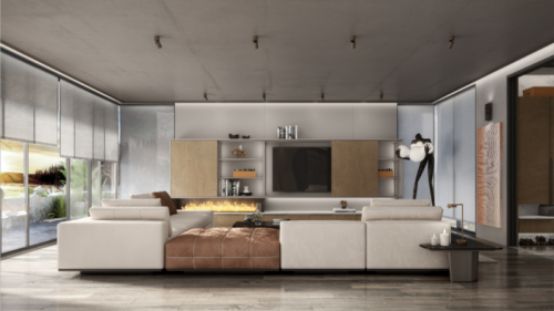 每个空间始终围绕“设计引领全球”传达柜类定制专家索菲亚家居生活方式。“放松”是众多消费者看完蒂斯系列客厅的第一感觉。索菲亚通过融合简单利落的黑色线条、富有肌理感的银雪石元素提升空间气质,蒂斯会客厅打造的真实火山岩石肌理,彰显出个性与独特的新视觉效果,创造真实性。
