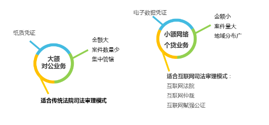 “金额小、案件量大、地域分布广的线上信贷案件,非常适合互联网司法审理模式,比如互联网法院、互联网仲裁、互联网赋强公证。”冯保龙表示,多元化司法模式是银行司法风控的核心模型。