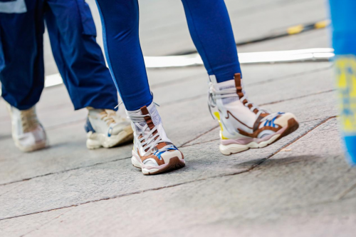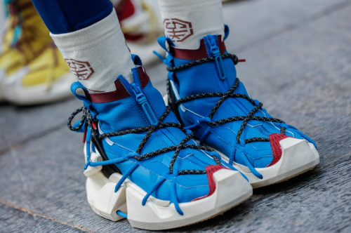 值得一提的是,秀场展示的另一大亮点:3D打印概念走秀款。灵感来自草鞋的鞋带系统——底和鞋带系统的一体化织法的智慧。编织草鞋的解构构成被中国基因的解构主义打破再重组,而鞋底是利用3D打印技术一体制作出。