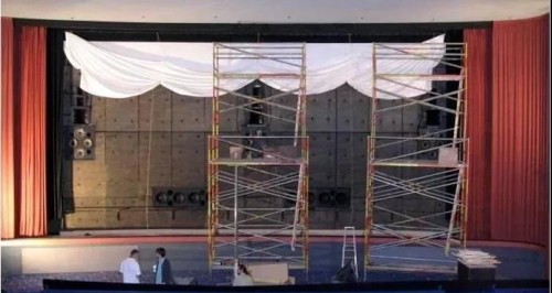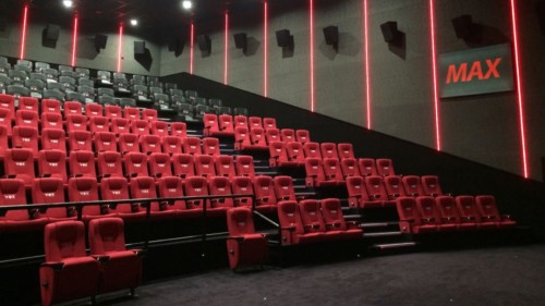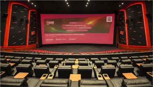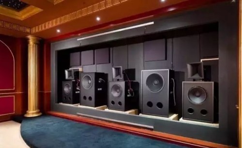 图片展示的是贝鲁特Vox 10银幕综合影院安装的Krix影院扬声器系统。其中一块银幕使用的是最新的杜比全景声61.3音频格式。在此格式下,影院的各个位置都会安装扬声器,包括后墙和天花板