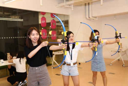 在位于上海铜仁路的英孚教育中国总部,员工们热情参加了射箭、乒乓球、平板支撑等10余个项目的比拼。一场关于奥运知识的线上答题活动也吸引了英孚员工的广泛参与。