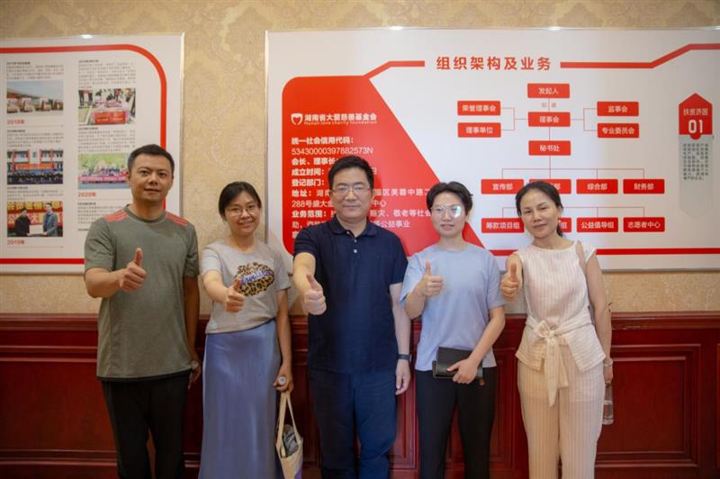 交流会开始之前,大爱慈善基金会秘书长刘青琳首先带领省教育基金会一行人参观了大爱基金会办公室、党建活动室,并详细介绍了湖南省大爱基金会的相关背景,用实际案例展示了大爱慈善基金会多年来始终坚守公益事业的决心,得到了省教育基金会一行人的高度认可。