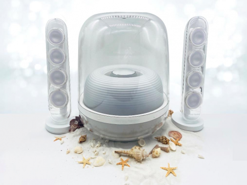 harman/kardon SOUNDSTICKS4沿袭了哈曼卡顿前几代水晶音箱的设计风格,用艺术之美激发灵感,将艺术融于声音系统,创造出优雅醇正的音乐氛围。并在低音炮单元的工业设计上不断精进创新,全封闭的透明穹顶外观将具有线条感的内饰结构一览无余,充分平衡了功能与时尚。扬声器部分采用四个单元串联的方式,透明的长条形设计简洁精巧,与现代设计的家居风格相得益彰,摆放在家中成为一件高雅的现代艺术精品。