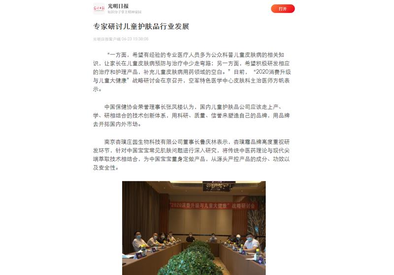 光明日报刊文《专家研讨儿童护肤品行业发展》