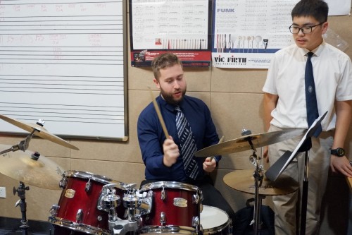 教我架子鼓的是Hunter老师,他的教学方法跟国内其他老师完全不一样。国内的老师一般会给你一部曲子,让你按照节奏打。但是Hunter老师就更加注重临场发挥,让我听着音乐的节奏自己打,更加激发我的创造力。