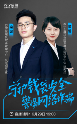 近年来,移动支付渗透到了人们衣食住行的各个方面,包括线上的电商购物和金融理财以及线下的零售交易、智慧出行等场景。随着移动支付的普及,在网络上以各种形式向他人骗取财物的诈骗手段也不断翻新出奇。我们怎样才能守好自己的钱袋子?苏宁金融反欺诈管理中心风险副总监栾诚、苏宁金融研究院金融科技研究中心研究员黄馨,将和大家聊聊如何防范网络诈骗。根据苏宁金融的日常监控数据,可以将电信诈骗的手段归纳为10种,传播途径大部分为电话、短信和即时通信软件(如微信、QQ)。大家可以在直播中对照这10种诈骗手段,看看自己是否也有过类似被骗的经历。除此之外,两位专家还将给大家分享日常银行卡支付及手机支付的安全小妙招。详情敬请关注苏宁金融6月29日19:00的直播:《守护钱袋安全,警惕网络诈骗》。