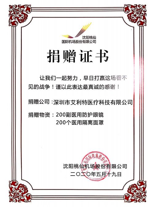 在新冠疫情广泛传播而全球医疗物资却极度短缺的背景下,艾利特医疗作为一家以实干兴邦为理想、以社会责任为担当的医疗器械生产企业,排除万难迅速复工复产。筹备防疫物资后,第一时间向社会各界无偿捐献,为全国人民以及全世界人民的抗疫工作做出了巨大的社会贡献。