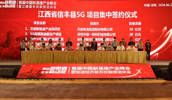 在「信丰县人民政府5G项目」的发布与签约环节,十个5G项目集中完成了签约。钟旭辉强调,信丰县在5G产业的规划、研发、发展、基站建设、应用领域这5大方面同步发力,目前,已经初步形成了5G产业一枝独秀和高速铁路、大数据中心、新能源充电桩、人工智能、工业互联网等领域多点开花的新基建产业发展格局。