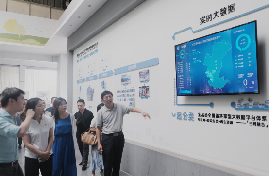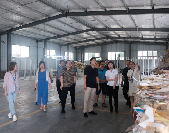 6月30日,长沙市城市管理和综合执法局党组成员、副局长袁海燕一行4人莅临万容科技,参观考察并指导万容科技旗下孵化的一起分类「三网融合」垃圾分类蓝色体系在长沙县城区开展的垃圾分类体系建设及运营工作,长沙县城管局党组副书记唐艳灵、长沙县环卫中心主任张栋材、副主任李著等陪同调研,万容固废黄山多、邹君等陪同接待。