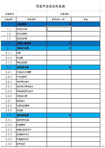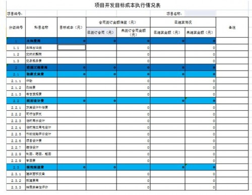 1、目标成本填报表