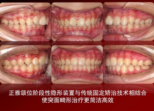 这一创新方案通过精巧的设计,使颌位重建隐形技术得以更广泛的应用,让正畸治疗变得更加高效。在应用颌位重建阶段性装置时,可充分发挥矫形矫治同步进行的优势,在实现颌位重建的同时,实施牙列排齐、前牙压低、后牙后移等矫治任务,从而在应用固定技术等其它装置继续进行第二阶段矫治时,曲线整平、咬合对接会更加简洁高效。