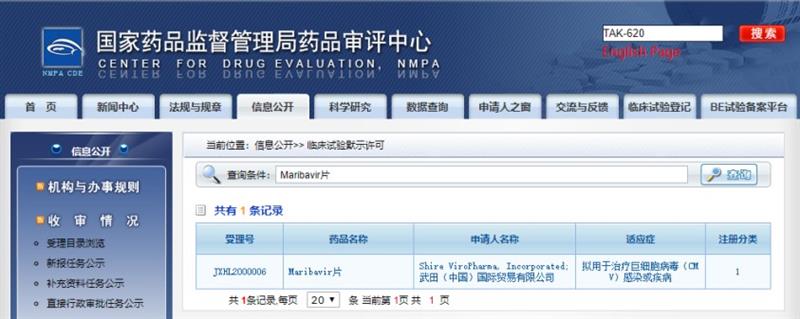 据中国药监局药品审评中心(CDE)网站公示,武田(Takeda)旗下用于治疗器官移植术后最常见的巨细胞病毒感染/疾病的maribavir片(TAK-620),已在中国获批临床研究。