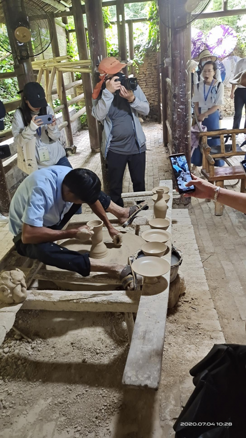 苏沧桑(浙江省作家协会创研部主任、浙江省散文学会常务副会长):苍南虽然不大,但是风景优美,也很有当地特色,这里有着浓厚的农耕文化,同时完美结合了海洋文化。苍南人的性格豪爽、能干、智慧,有着敢为人先的优秀品质。在碗窑,我亲手参与制作微陶,所以对碗窑的制瓷文化有着切身的体会。我曾经接触过龙泉青瓷以及南宋官窑等窑瓷器皿,相较而言,苍南的碗窑有一种特别古朴的味道,它不仅仅蕴含着一股田园气息,还有一种特殊的海洋味道。在听说当地老百姓烧制出碗窑是用来做餐具,而不是拿来观赏时,我觉得碗窑很有实用性且特别接地气,这也特别契合苍南的气质。