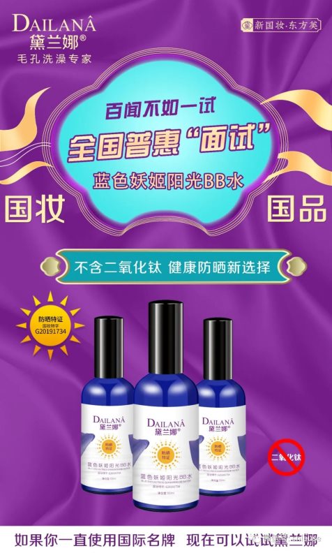 据了解,目前很多消费者往往以“SPA”防晒指数来衡量一个防晒产品的防晒能力。而为了防晒指数高,很多防晒产品添加了二氧化钛。但根据最新研究发现:二氧化钛在防晒的同时,还具有一定的副作用,被欧盟公布为二类可疑致癌物。黛兰娜蓝色妖姬阳光BB水在研发阶段就以健康防晒为出发点,产品中不添加二氧化钛,多重复合防晒,并拥有防晒特证,是健康防晒新选择。健康无价,健康的防晒产品必然会更受欢迎。