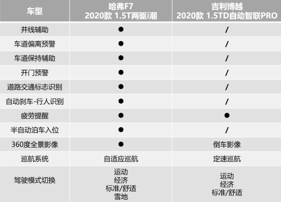 可以看到,为了在强手如林的SUV圈中立足,哈弗F7和吉利博越PRO在智能互联上都拼尽全力,支持语音控制、车联网、车载娱乐、智能家居等,功能十分丰富。