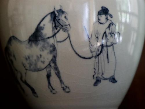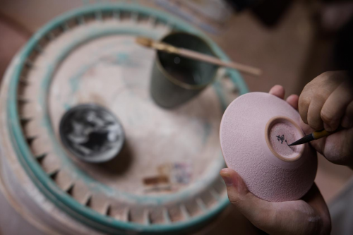 小根老师算得上蒲石特聘画师了,虽然年纪轻轻,他对中国画在陶瓷上的表现艺术之痴迷,实属罕见。在这种浮躁的社会背景下,年长艺术家亦不乏沽名钓誉,其实难副之辈,能静下心钻研国画工笔的年轻人更加寥寥,学艺途中或天赋不佳,或心性不稳,有大成者凤毛麟角。艺术造诣这事,天赋是一部分,却也更加离不开一个“痴”字,小根老师多年前不远千里从湘赴景,醉心陶瓷绘画创作,看他作画,那感觉便是与众不同的静谧,神态上沉凝着对艺术的虔诚和尊重,落笔有神,目如朗星,他说:绘画是他修行的方式。你在他的作品里能体会另一番真实天地间的美和安静。