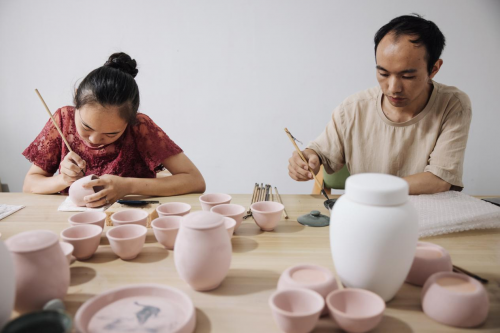 直至小根老师后来与妻子王霞相遇,两人情投意合,又有着同样的艺术理想和静雅气质,他们很多时候,在创作之余,所喜之事不过焚香礼佛,登山望远,一日三餐也不过是几个素菜,却怡然自得,不怨不悔,因为他们夫妻两人,心里很纯粹,纯粹到能把心中所想流露于器物作品上,心如工画师,能画天地间。有时候,看着他们夫妻两个安静的作画,不禁会想:这世间纷扰万千,诱惑种种,又与他们夫妻何干呢?
