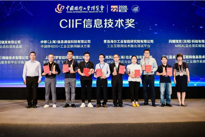 中国工博会是唯一经国务院批准的具有评奖功能的展览会,今年首设CIIF信息技术奖,授予代表全球工业和信息化融合的前沿水平、在技术创新和模式创新上取得重大突破、实现示范应用或规模化商用、并对行业发展起到引领和带动作用的信息化技术和产品。本次大会上举行了隆重而简短的颁奖仪式,上海市经济和信息化委员会副主任张英和东浩兰生(集团)有限公司副总裁宁风,为获奖的京东工业品、中移(上海)信息通信科技有限公司、青岛海尔工业智能研究院有限公司、阿里巴巴(中国)网络技术有限公司等8家企业颁发"CIIF信息技术奖"。