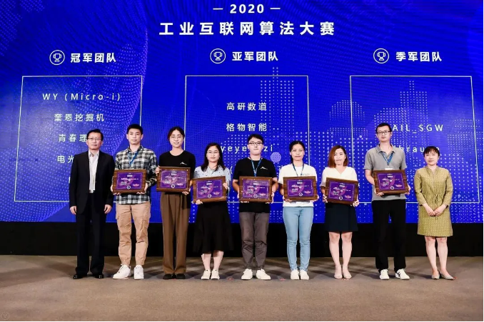 同时,大会还进行了2020工业互联网算法大赛的颁奖仪式,上海市工业互联网协会常务副会长张锡平、中国信息通信研究院副总工程师王爱华为汽车制造、高端装备制造、航空航天、医疗制药等5大赛道中获奖的11支优胜团队颁发“工业互联网算法大赛”奖。