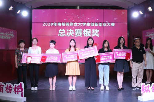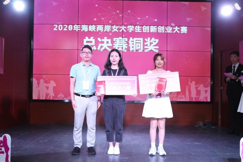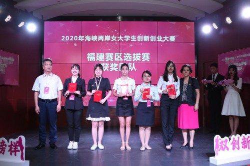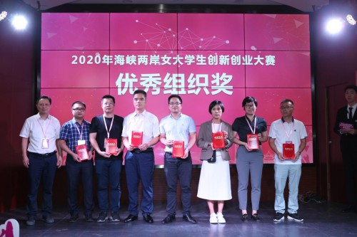(图为厦门市集美区妇联主席王汴玉,集美大学创新创业中心主任张志新为分赛区选拔赛福建赛区获奖项目代表颁奖)