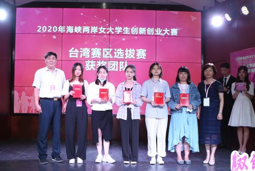 (图为厦门市妇联党组成员、副主席谢立武,厦门市妇联一级调研员汪根友为分赛区选拔赛台湾赛区获奖项目代表颁奖)