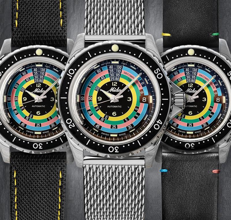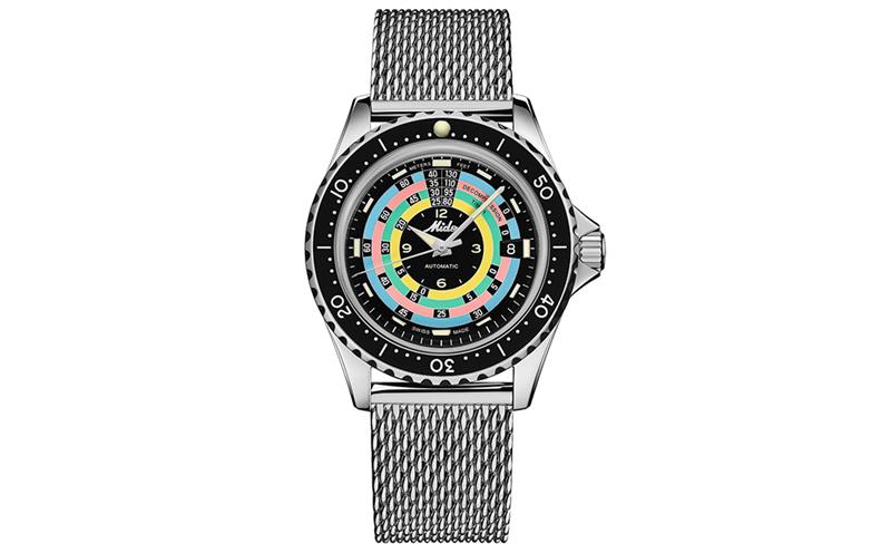 瑞士美度表领航者系列“彩虹圈”复刻限量款腕表,将指引美度发烧友和收藏爱好者重返上世纪60年代征程,感受潜水运动振奋人心的精神。