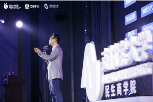 为帮助民生服务行业实现数字化转型,支付宝大学成立了民生商学院,通过教育培训,帮助民生服务机构从组织和业务两方面提升数字化能力。支付宝大学赋能中台负责人安秋明在会上做了题为:赋能创造数字商业价值的主旨演讲。
