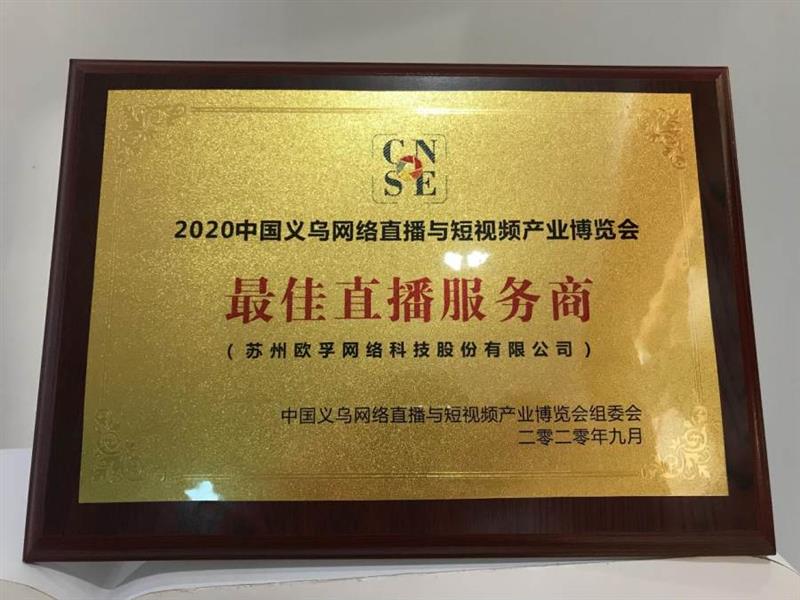 2020中国义乌网络直播与短视频产业博览会(以下简称义乌短视频博览会)于9月26-28日在义乌国际博览中心举行。苏州欧孚网络科技股份有限公司(以下简称欧孚科技)作为整个产业链中人力资源服务最重要的一环,也受邀参加,同时还获得了主办方颁发的“最佳直播服务商”。