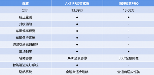 首先便是L2+级智能辅助驾驶系统的匹配,让后起之秀AX7 PRO在同级当中没有了配置的短板。在原有的智能辅助功能的基础上,AX7 PRO又在仅13.39万元的定价水平上,居然为用户配齐了全速ACC、智能领航辅助、车道保持系统、交通标志识别、智能远光灯控制等功能,不管是路遇堵车还是极端天气,都能凭借L2+级智能辅助驾驶系统灵敏的十八般武艺,让辛苦的驾驶变成轻松出行,“老司机”的养成再也不难。比起同价位的博越智慧PRO来说,价格实惠的AX7 PRO显然在驾驶辅助配置方面更加超值。