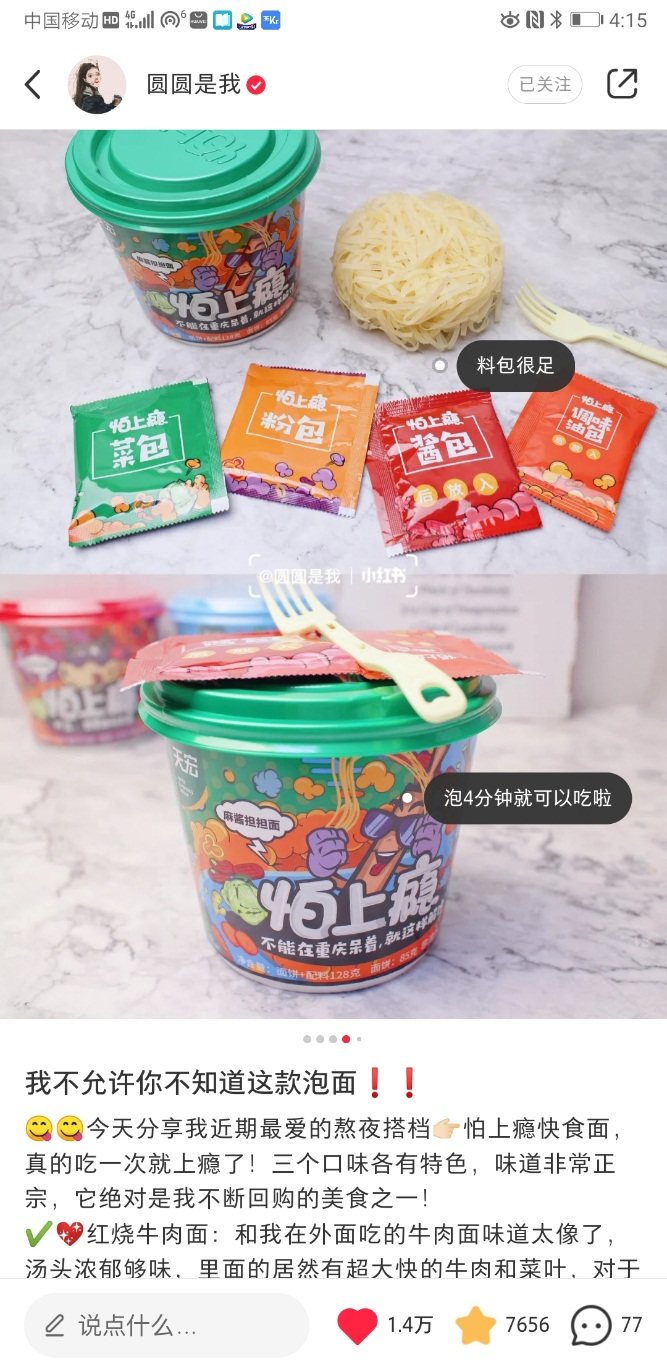 当然,各大新媒体平台的高度关注,网红、美食达人、大咖、食尚圈现场直播发布,获得了千万级观看量,除了是一款非油炸的健康泡面之外,跟怕上瘾的品牌定位有关。怕上瘾的整个品牌调性、包括口味调试都引起了熬夜族的极大兴趣,熬夜的时候,不管是加班还是赖在床上刷抖音,这时候容易出现小饿的感觉,自己又懒得下厨,外卖又已经歇业了,传统方便面又有不健康的标签。怕上瘾恰到好处出现在了眼前,有点开胃的调味汤料,加上年轻化的调谑风格,一碗怕上瘾入肚,可以心满意足的睡觉了。也难怪很多博主直接叫怕上瘾熬夜治愈神器。