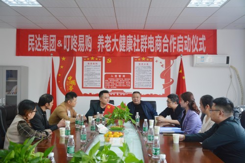 10月12日下午,湖南民达集团与叮咚易购首度战略合作暨养老大健康社群电商合作启动仪式在民达集团举行。民达集团董事长周小峰先生,叮咚易购总经理刘广业先生出席仪式。民达集团项目负责人吴晟先生、叮咚易购副总经理兼运营总监魏进先生分别代表双方签署战略合作协议书。