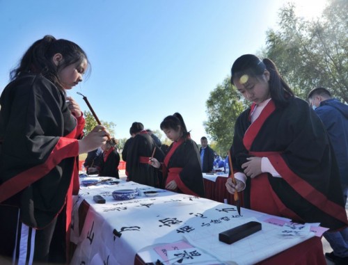 丹青书盛世,妙笔绘华章。为弘扬中华优秀传统文化,充分挖掘西山永定河文化内涵,持续打造云居金名片,2020年10月17日,由房山云居寺文物管理处主办的“敬畏千年 房山石经暨传承石经文化 描绘时代之美”大型书画笔会活动在云居寺静琬广场举行。