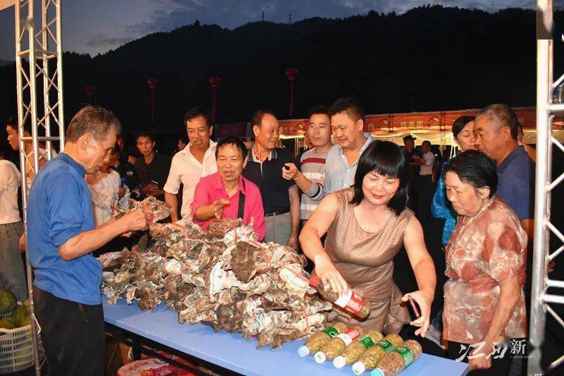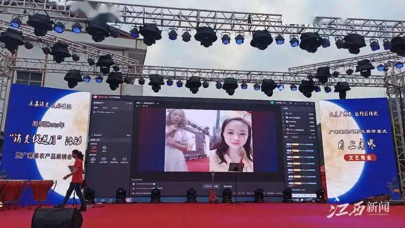 乐享消费,美好生活,在《月上广寒文艺晚会》前,现场还举办了湘东区2020年“消费促进月”活动,通过与全国各地主播现场连线直播推广,令广寒寨的农副产品冲出本土,走向全国,进一步助力脱贫攻坚。