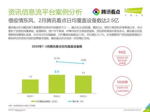 艾瑞发布信息流行业报告:腾讯看点3月日活达2.4亿