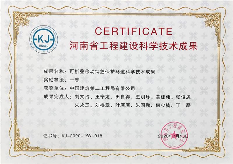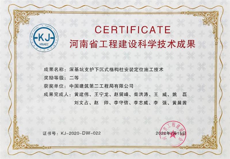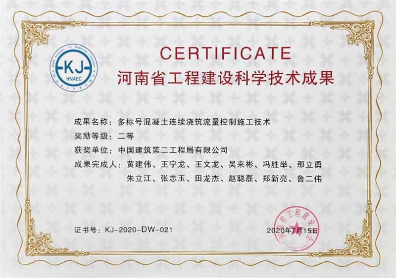 中建二局龙湖金融中心外环项目获得5项河南省工程建设科学技术成果奖
