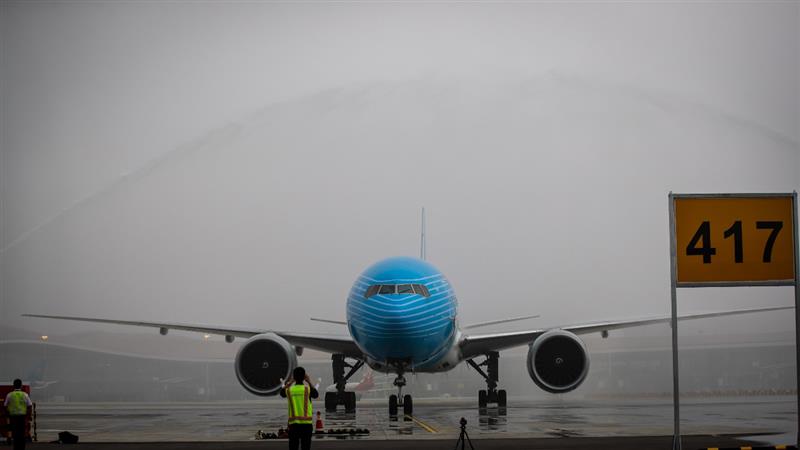 大兴机场“生日”迎全球首架东航“进博号”来贺