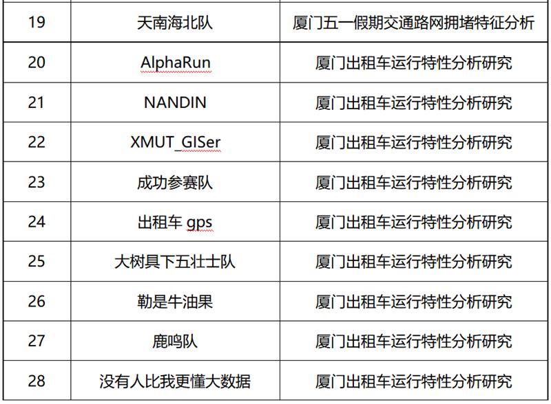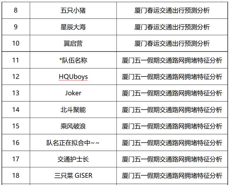 厦门大数据安全开放创新应用大赛·交通专题复赛入围名单公布